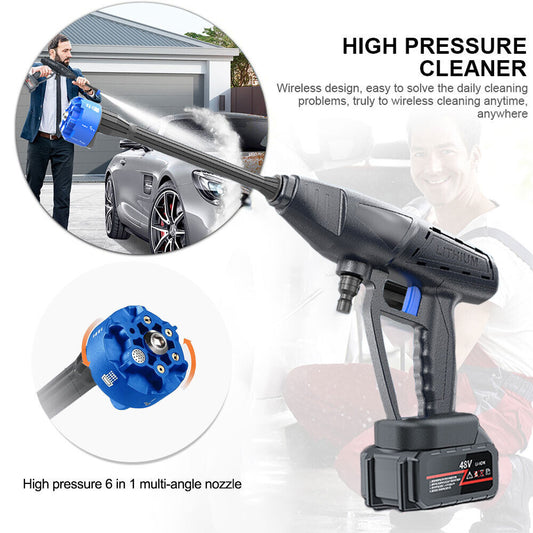 Mașină de spălat cu presiune portabilă fără fir 6 în 1, baterie Li-Ion 48V, kit complet curățare auto, casă și grădină, pistol apă presiune înaltă