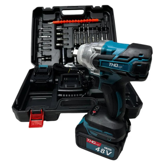 Pistol Impact 48V cu 2 Acumulatori 4Ah CADOU Valiză Transport – 350 Nm, Cheie Electrică 1/2”, LED, Putere Mare Auto & Bricolaj