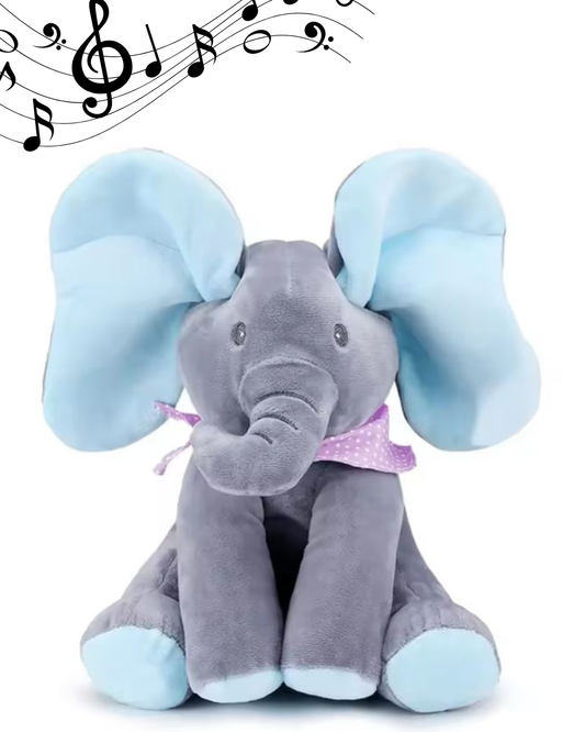 Elefănțel Interactiv din Plus – Cântă, Vorbește și Face „Cucu-Bau”, Mișcă Urechile, Muzical, 30 cm, Albastru – Jucărie pentru Copii 1+