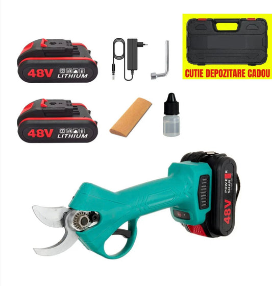 Foarfecă Electrică de Grădină 48V cu 2 Acumulatori – Lamă Robustă și Geantă de Transport Inclusă