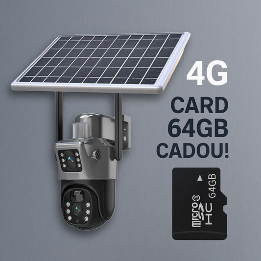 Cameră Supraveghere VISURON 4K cu Panou Solar – Dubla Lentilă, 360°, Zoom 10X + Card 64GB CADOU!