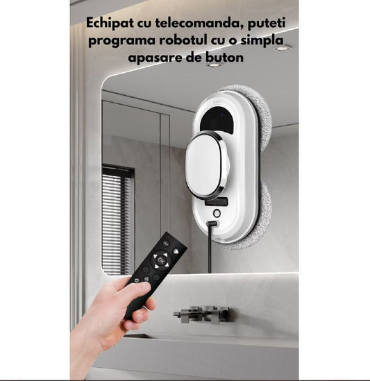 Robot automat curățare geamuri 5600Pa, 90W, cu telecomandă – Aspirator inteligent pentru ferestre, oglinzi și suprafețe din sticlă, lavete microfibră incluse