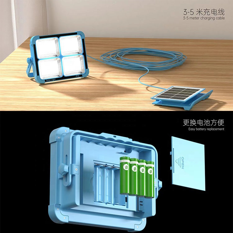 Lampă Solară LED 100W Portabilă cu Panou Detașabil, Reîncărcabilă, Impermeabilă, cu Funcție Power Bank – Lumină pentru Camping, Drumeții și Urgențe